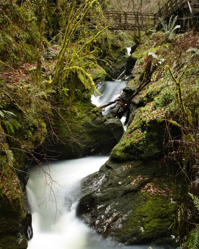 landing, crawling… away from the mouth of the plunge pool and into the throat of the dense undergrowth.