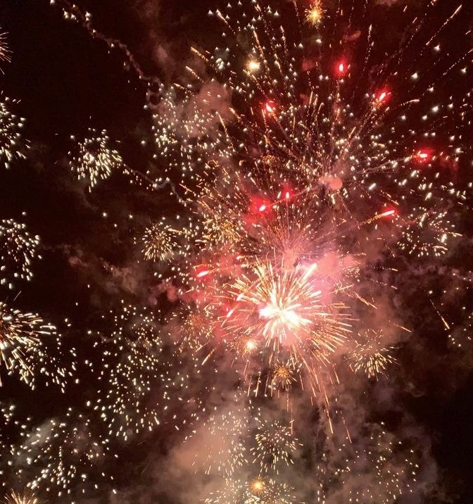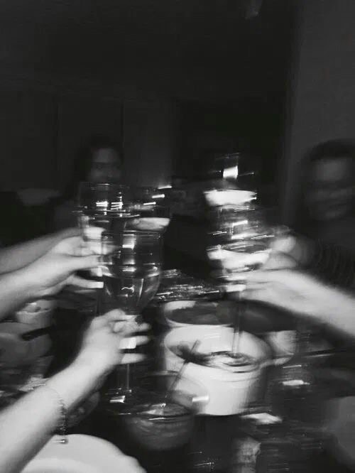 Cork cannon fire- a victorious salute to the day in gold Vesuvius rain. Forget time and watch stiff collared clock hands march from the wall. There was never a better moment to be drenched in snow globe shimmer as I climb inside a copa to swim, and you dive into the buffet with impressive butterfly stroke- champion. Chocolate coin medals first place at this table of delights, cheese knife poised to slice 8pm into digestible pieces as we arrive in port. First footers embark with intrepid laughter to applaud unclaimed territory, bringing possibilities and beloved traditions long since wrapped in tender memory- bells and bows and us curled round scissor blades to unfurl against the sofa with soft drone of royal speeches… and snores… surrendering to warmth and wine and whispers. Shhh. Look at us in our perfect ripped crowns, the rulers of this cosy chaos we groan for the perfect collapse in our floral cushioned foxhole. We shall serve each other and fight to the end for the last sprout.