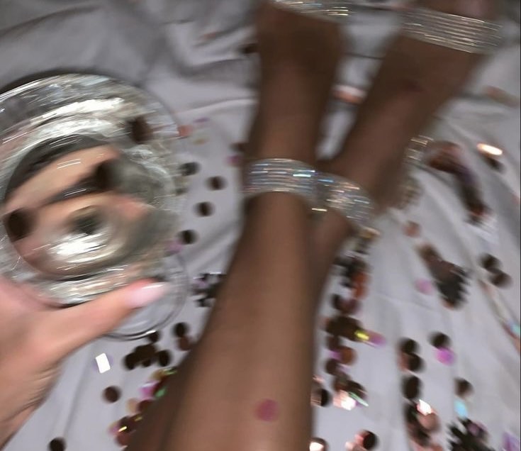 champagne flute as glitter and confetti fell all over me